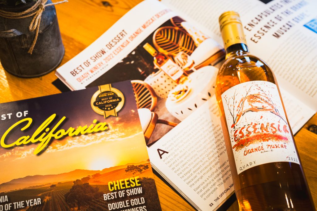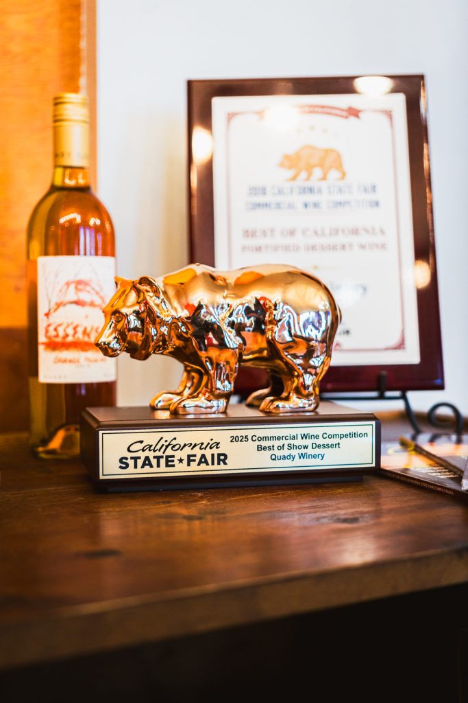 This week Quady Essensia Orange Muscat officially received the California State Fair’s prestigious Golden Bear Award after earning a 100-point perfect score, double gold, Best of Class and Best of Show Dessert during the fair’s Commercial Wine Competition in April. The competition’s Chief Judge Mark Chandler led 39 expert judges through the evaluation of 1,587 wines representing 309 of California’s top wine brands.