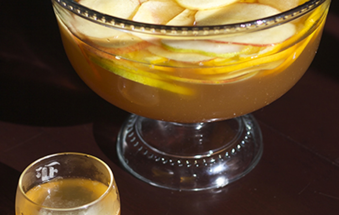 Thinly slice apples, pears and oranges lengthwise. Coat with lemon juice to prevent discoloration. Place the fruit in a large bowl. Add Vya Whisper Dry, Bourbon (Buffalo Trace preferred), apple cider, honey, brown sugar, and spices. Stir to combine. Cover and refrigerate for 2-4 hours, or overnight. Before serving, top with chilled Electra. Serve in a punch bowl, or hollow out a large pumpkin and serve inside.