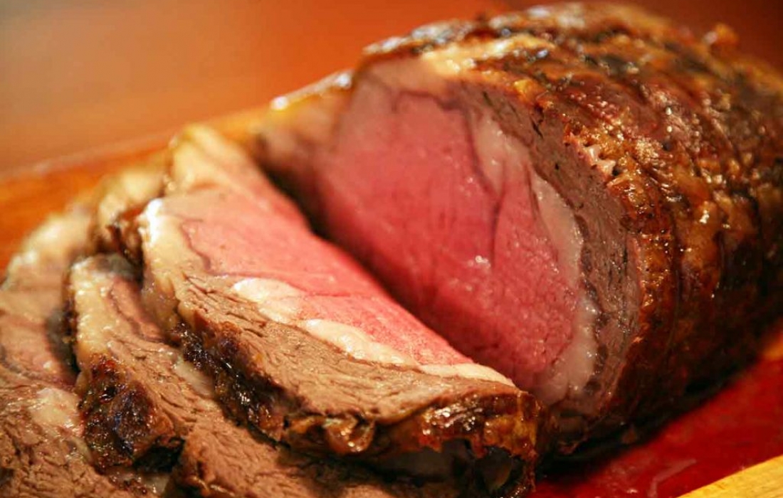 4. After 15 minutes on 500F, reduce the heat to 325F. Allow 13-15 minutes per pound for rare and 15-17 minutes for medium rare. Error on the rare side, the roast will continue cooking once you take it out of the oven to “rest” and an overdone roast is a tragedy. Temperature on the meat thermometer should read 120F for rare or 130F for medium. Check about a half hour before you expect the roast to be done.